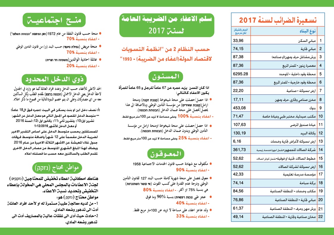 ضريبة الأرنونا (צו ארנונה) 2017