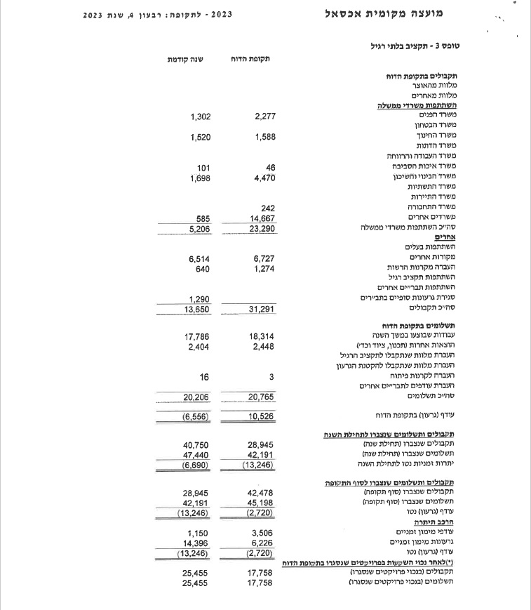 الوضع المالي للمجلس المحلي غير مريح , وهناك عجز في الميزانية العادية لسنة 2023 حوالي 3.5 مليون شاقل وأيضا هناك عجز في الربع الأول من السنه الحالية , علينا اتخاذ عدة إجراءات لتقليص العجز , وأيضا هناك تخوفات من اجراء تقليصات في ميزانيات .